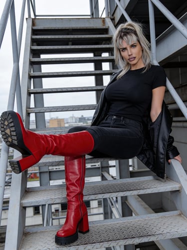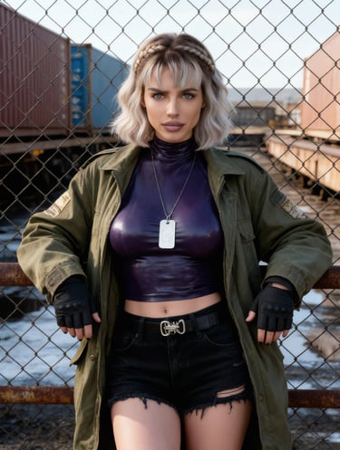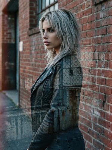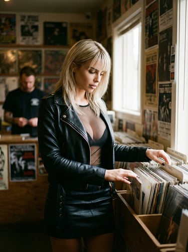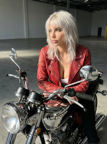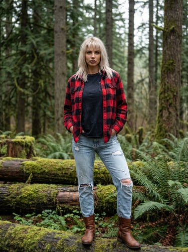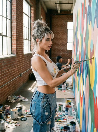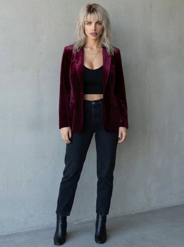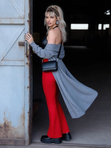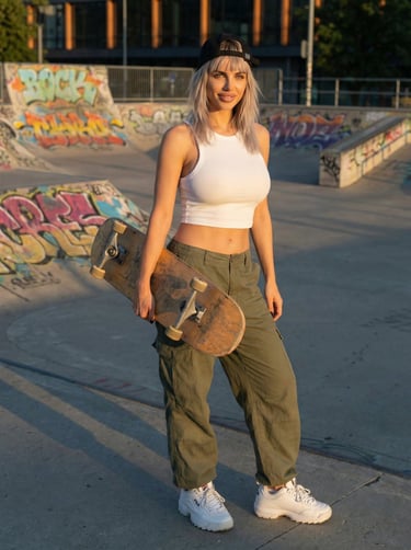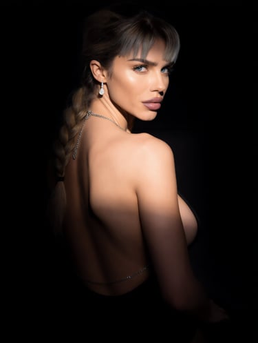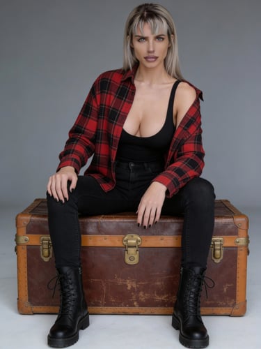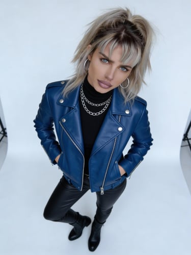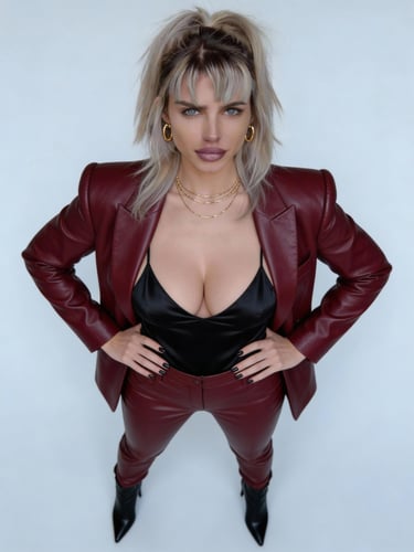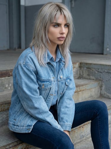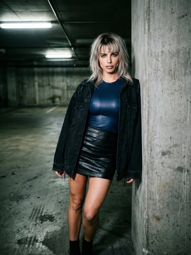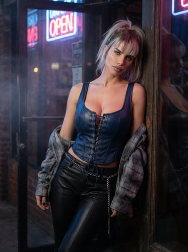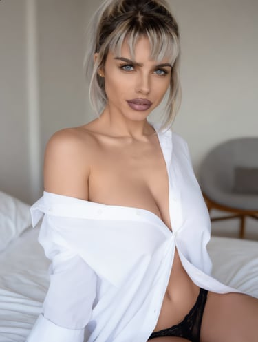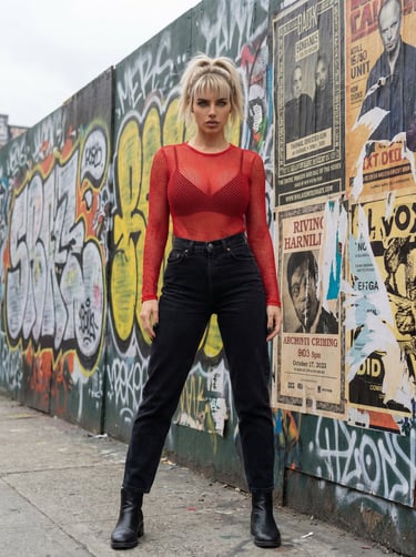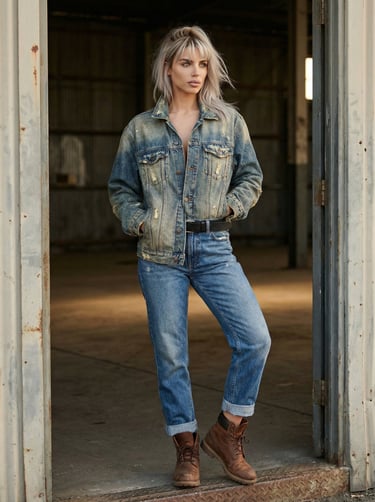 Lucy in blue bralette with unbuttoned jeans casual pose